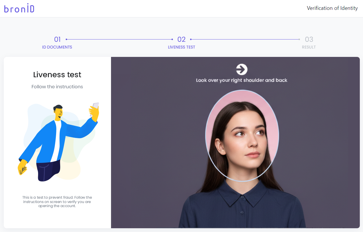 Step 3: The bronID form will generate 6 random instructions on the screen. The customer must follow the instructions and move the head in the instructed direction to complete the liveness check. The system will verify in real-time whether the customer is following the instructions.